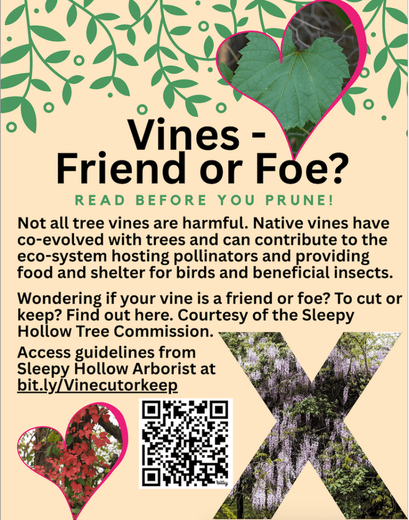 The Village arborist has prepared educational guidance to help homeowners understand whether they need to prune vines on their trees. You can access the guidance here.