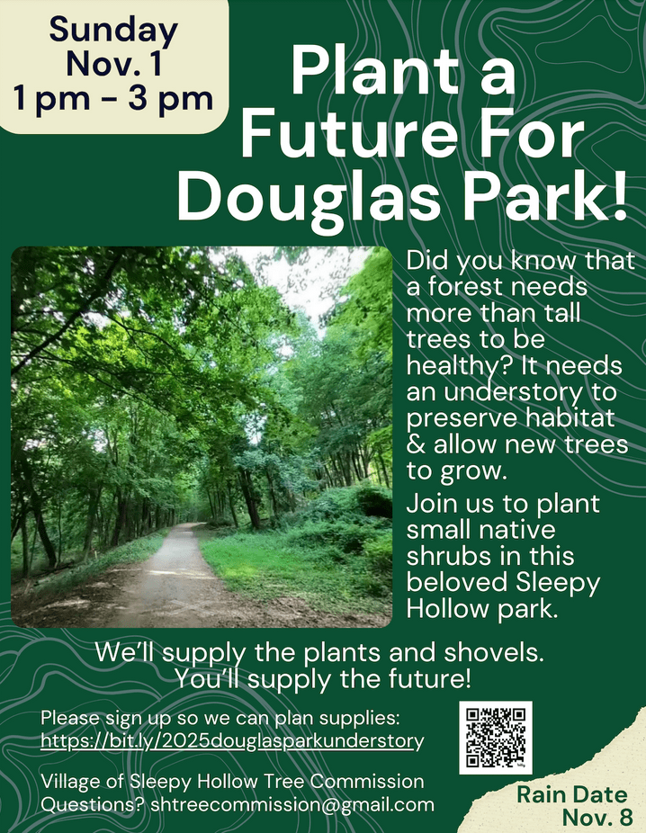 Concerned about vines on the stately trees along Route 9? The Sleepy Hollow DPW will be completing their work to remove invasive vines on the London Plane trees on the border of Sleepy Hollow Cemetery. DPW already removed vines on the southern portion of these trees and will resume work again in the winter/spring season when it is safest for the trees to have this work done. If you have questions, feel free to email shtreecommission@gmail.com.