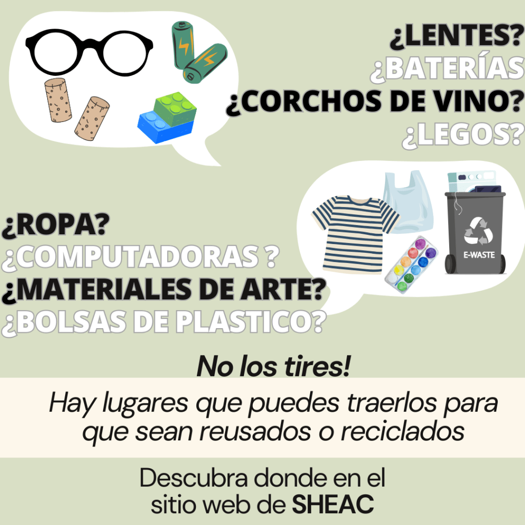 - MATERIALES DOMÉSTICOS: Por último, pero no menos importante, H-MRF, el lugar de recuperación de materiales domésticos en Valhalla, es a donde deben ir muchos de los artículos domésticos. Si sus cosas no se pueden reutilizar, reparar o donar, haga una cita para visitar el H-MRF (¡y resista la tentación de botarlas a la basura!). Los artículos que aceptan incluyen pintura, productos químicos, desechos electrónicos, llantas de automóviles y extintores de incendios. Más información aquí.