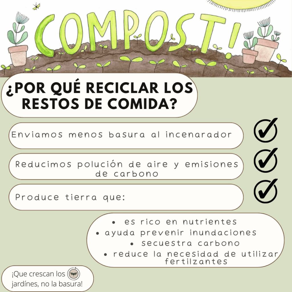 Reciclar restos de comida es una buena oportunidad para reducir la cantidad de basura que generamos. Los desechos de alimentos no solo ocupan una gran parte de nuestra basura, sino que cuando no los quemamos, podemos convertirlos en algo valioso para nuestro planeta: compost.